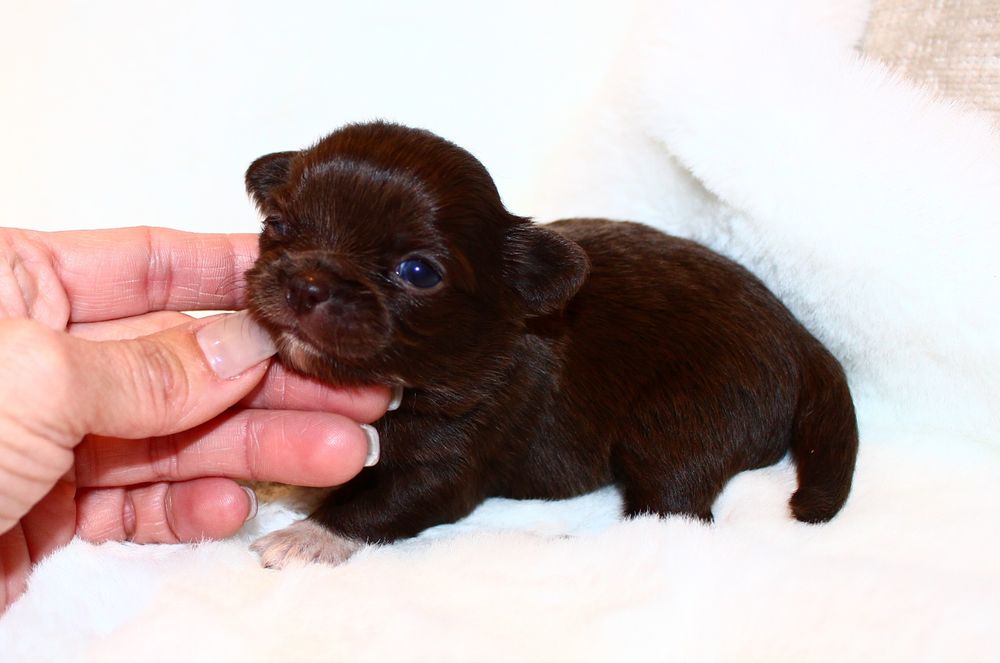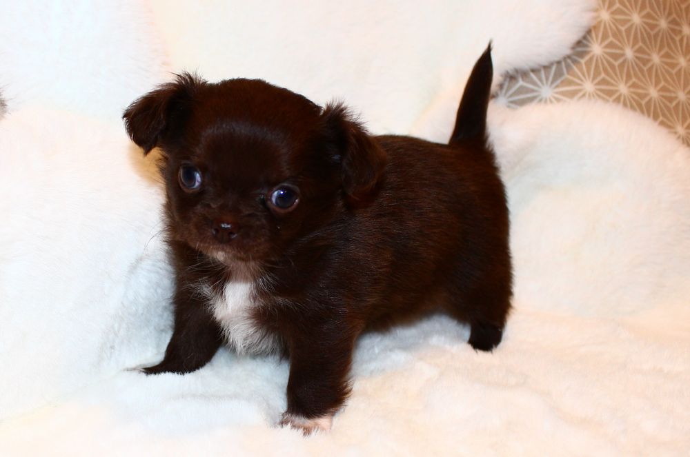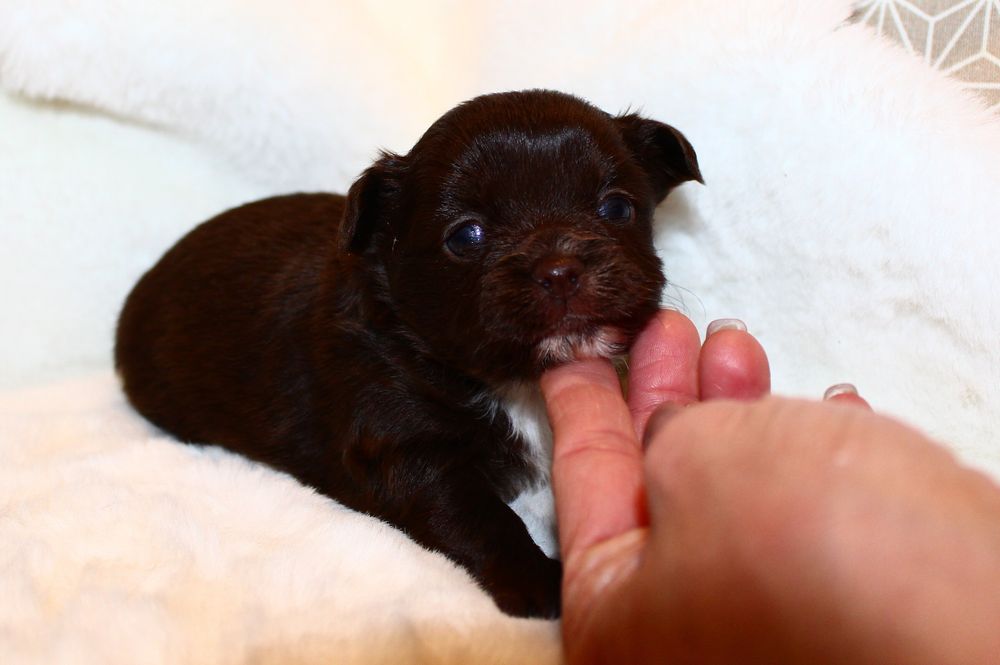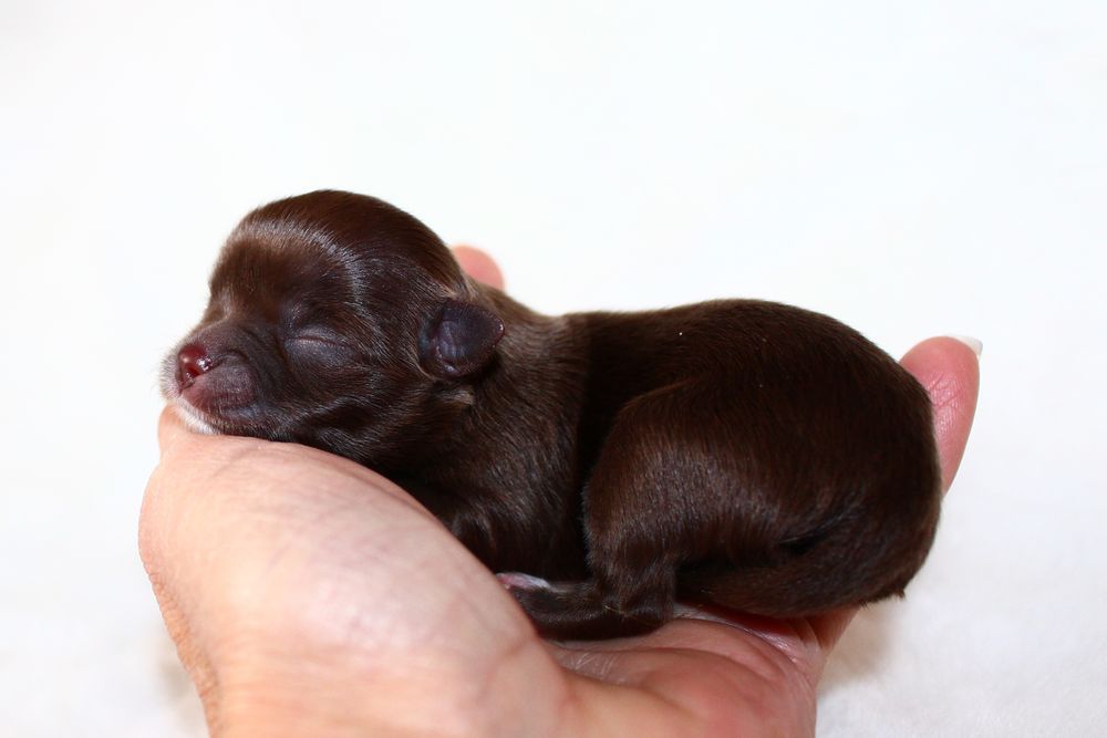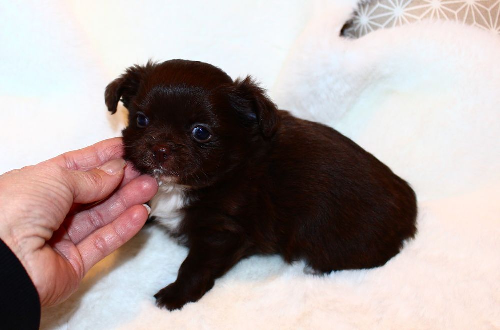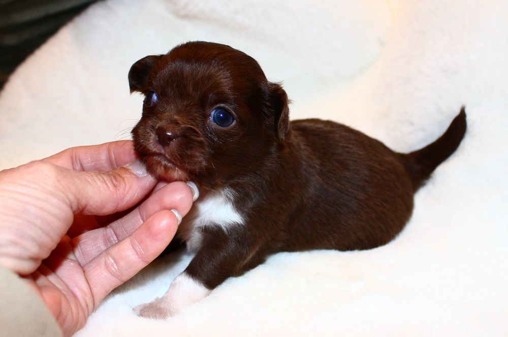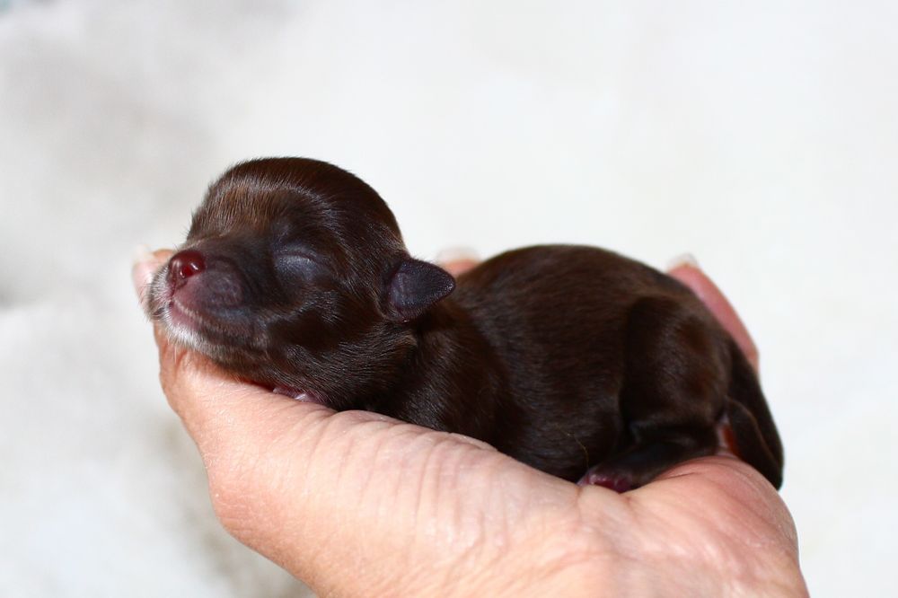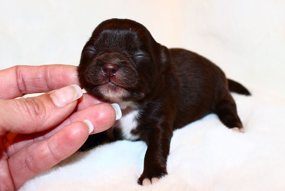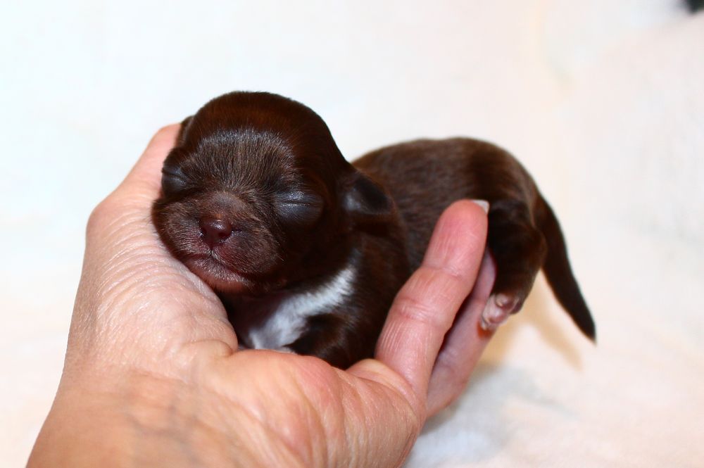 Hündin - schoko mit weißen Abzeichen